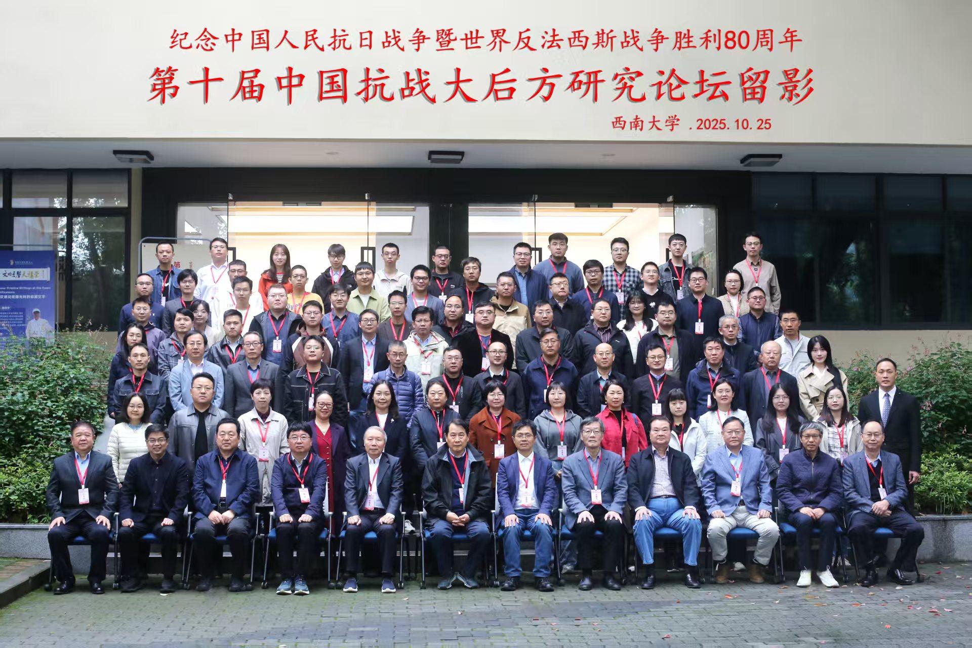 为纪念中国人民抗日战争暨世界反法西斯战争胜利80周年,弘扬伟大抗战精神,深化学术研究,2025年10月25日—26日,由中国抗日战争史学会、《抗日战争研究》编辑部与西南大学主办,西南大学历史文化学院 民族学院、西南大学中国抗战大后方研究中心承办,重庆市历史学会、重庆市抗战大后方历史文化研究会、重庆大学历史学系协办的“第十届中国抗战大后方研究论坛”在西南大学成功举办。来自全国高校与研究机构的近百名学者齐聚山城,共话抗战大后方历史研究的新进展与新方向。